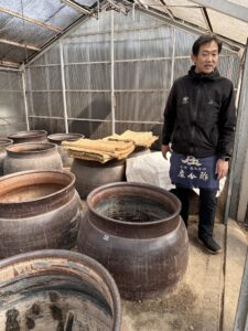 また庄分酢では黒酢作りは亀を半分地中に埋め込み